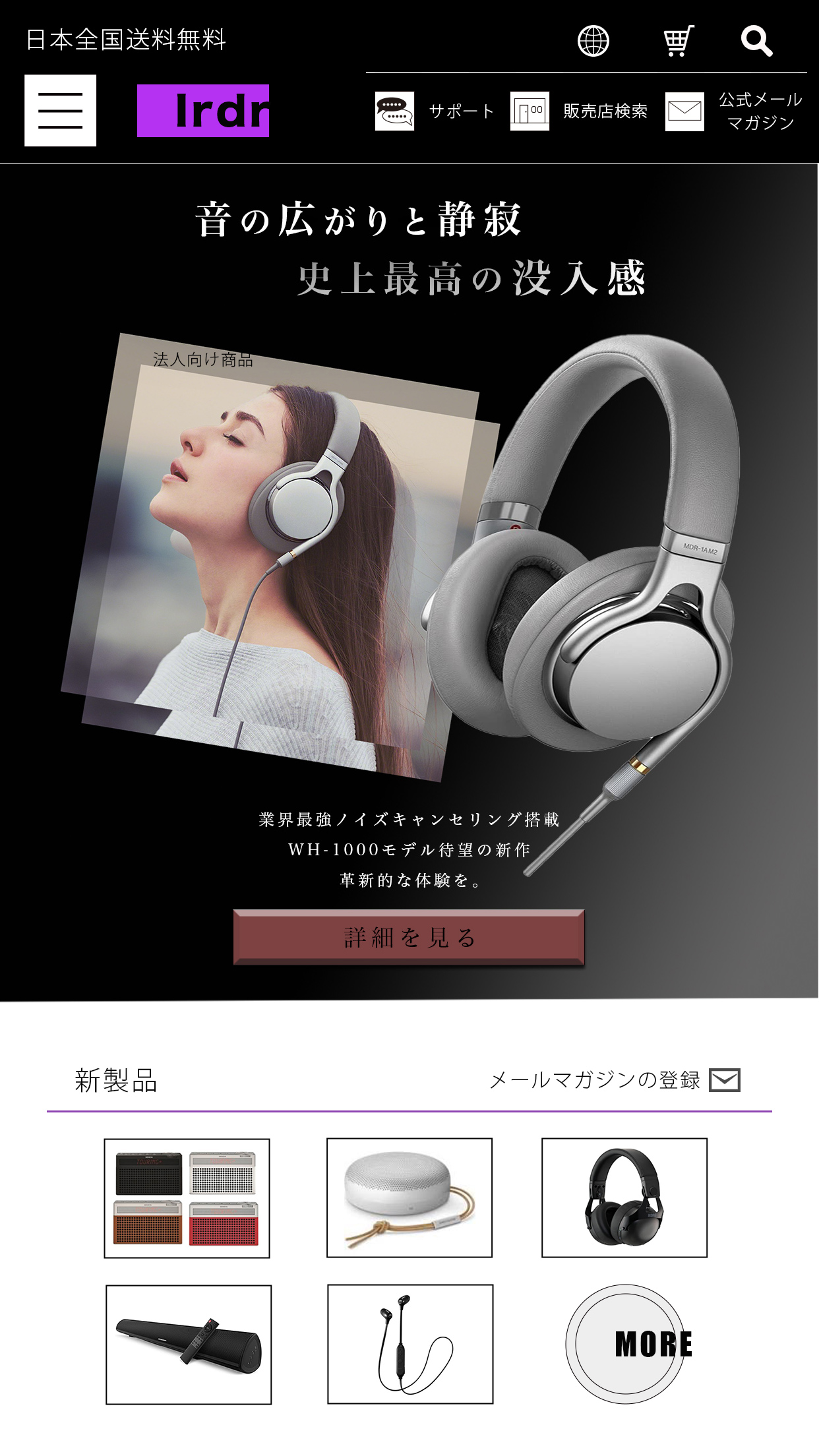 ロゴは、日本製Audioメーカーの設定なのでIrdr=彩の頭文字を使用し、『Audio機器で生活を彩る』という意味にしました。シンプルな中にエッジのある紫の配色と右寄せした文字でブランドイメージに合うようあえてシンプルを意識し作成しました。
