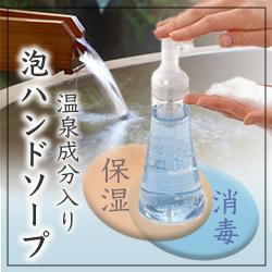 清潔感が出るように白を基調に淡い色味で統一しました。また、消毒×保湿の対極な効果を、対極な色味で表現し、透過して重ねました。保湿の色は、肌の色をイメージしました。温泉成分入りがイメージができるよう、温泉の吹き出し写真を背景に置きました。