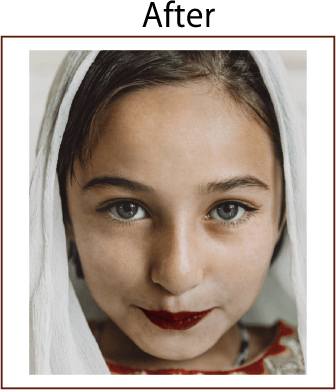 自然であることを前提として、唇は赤く血色が良くなるように、また顔全体が引き締まるように。