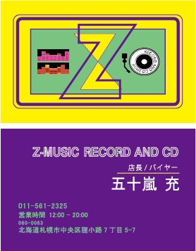 黄色×紫の配色で、エッジの効いたSTREETな印象を。差し色にあえて柔らかいグリーンを持ってくることで配色のビビットさが際立つように。Z-MUSICの由来は、探していたものが最後に見つかるという意味なので、名刺の裏面もzをモチーフにしたデザインにしました。